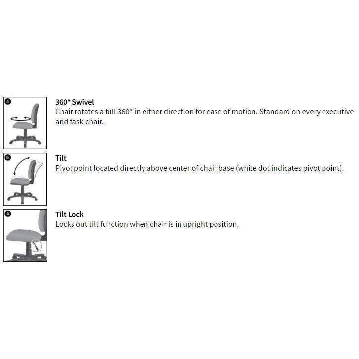 - Chair rotates a full 360* in either direction for ease of motion. Standard on every executive and task chair.